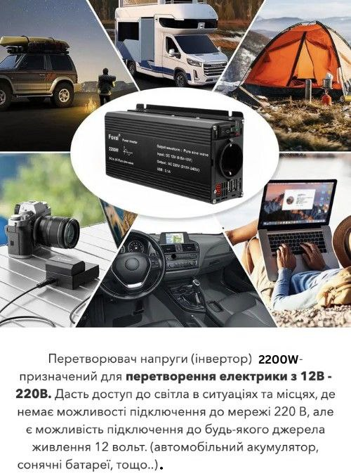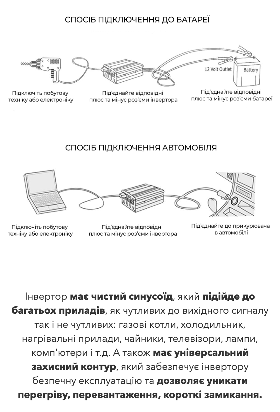 Швидке Підключення: Просто під'єднайте до акумулятора 12V — і отримайте 220V. Кабелі вже в комплекті!