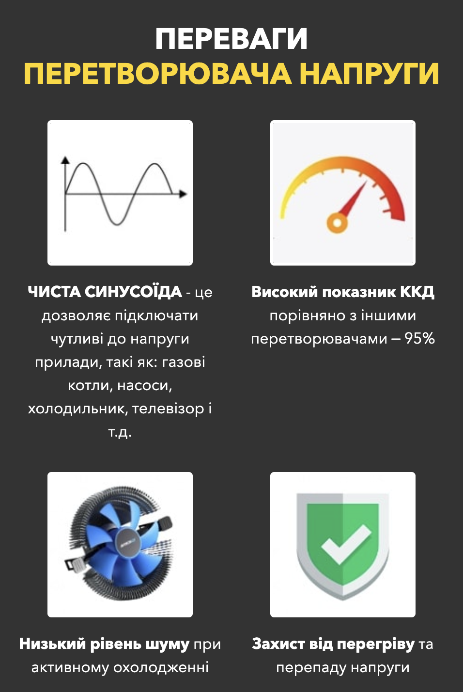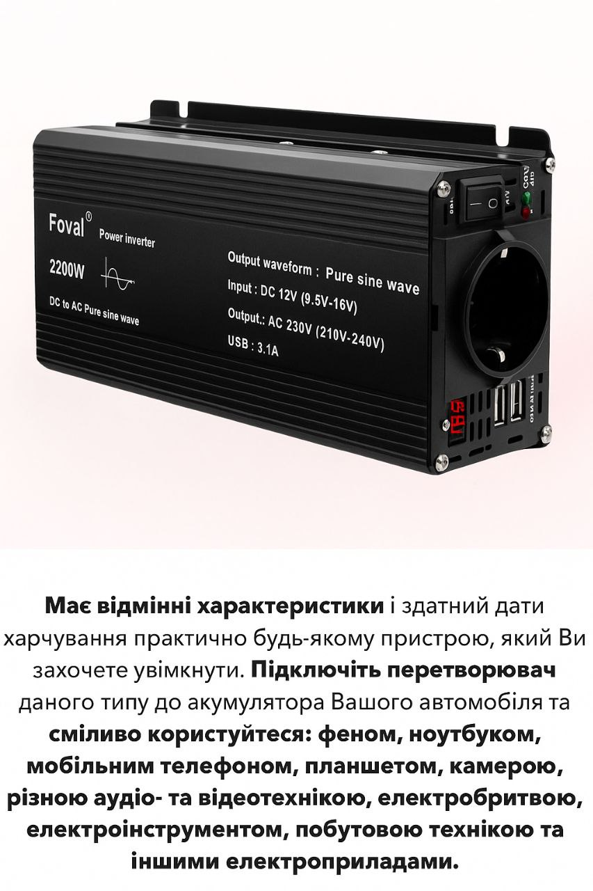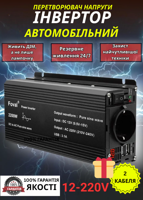 Шукав надійний варіант для робочого місця під час блекаутів. Взяв FOVAL 2200W. Задоволений, що не пошкодував грошей. Мій робочий комп'ютер і монітори працюють без перезавантажень, блок живлення не 'пищить'. Як порада: краще відразу подбайте про гарний, потужний акумулятор, щоб ці 2200W справді відпрацьовували свою ємність.